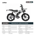 With its upgraded high-torque motor, vintage design, and dual suspension, The Drifter conquers both city streets and rugged trails with effortless power.